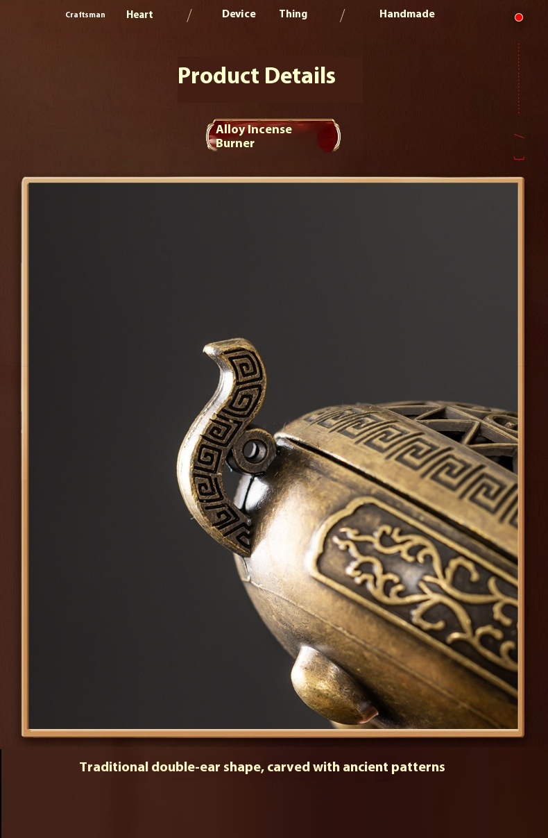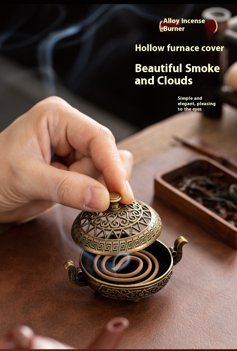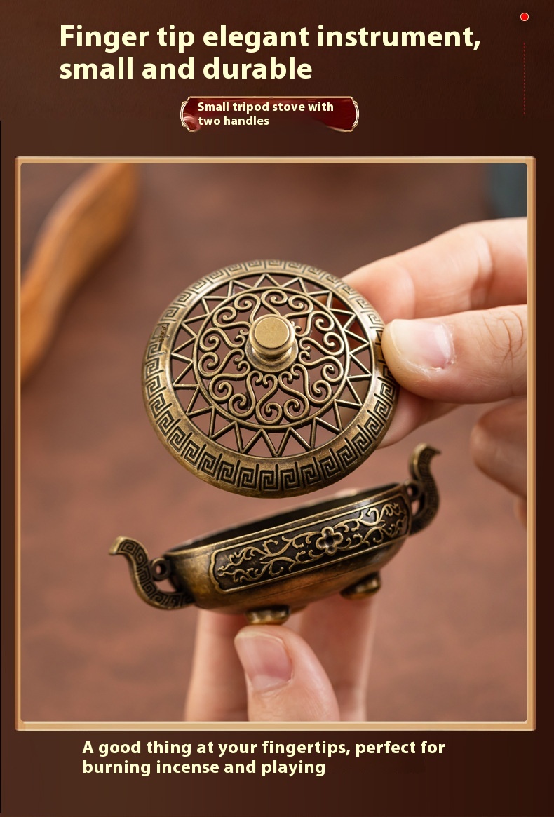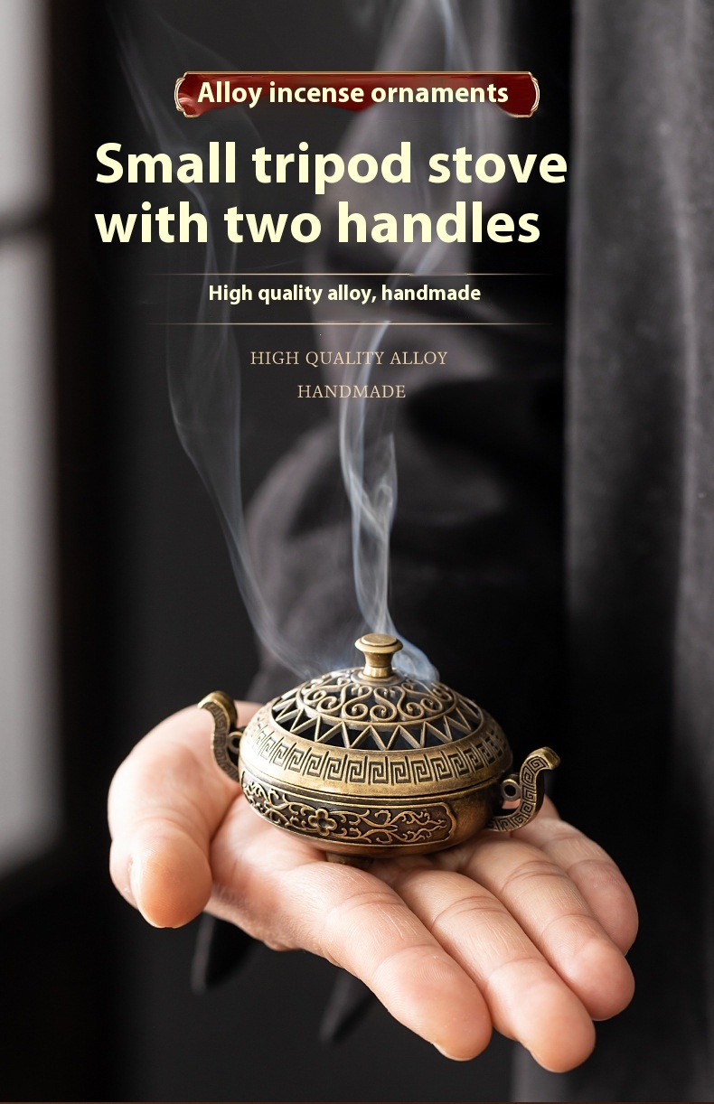 Binaural Antique Incense Burner Exquisite Pattern Hollow Out Three-legged Stove