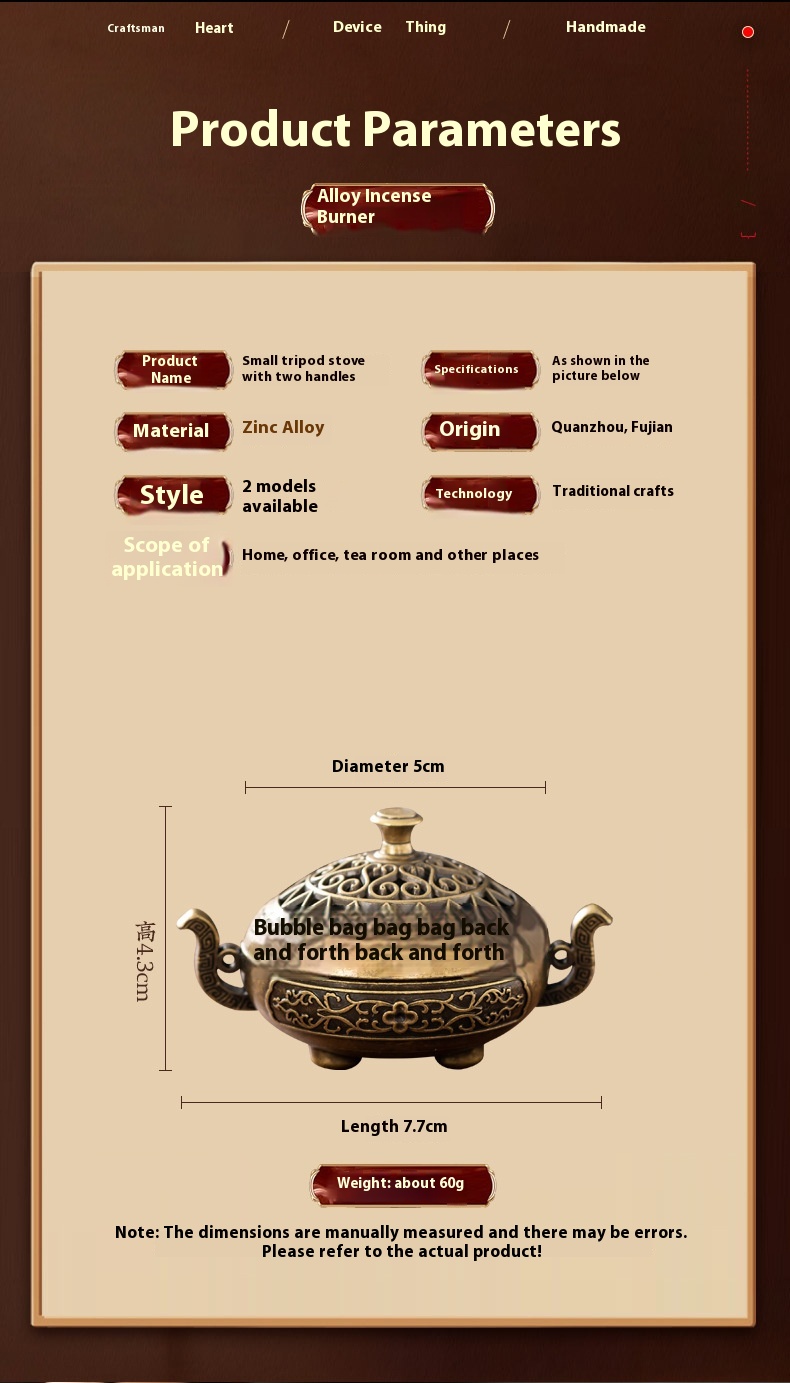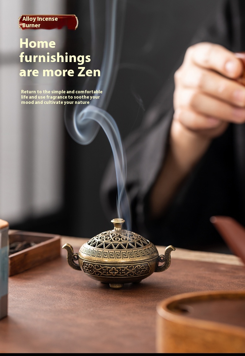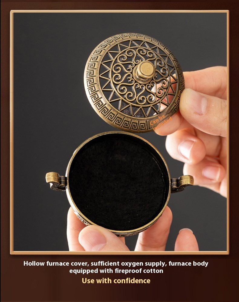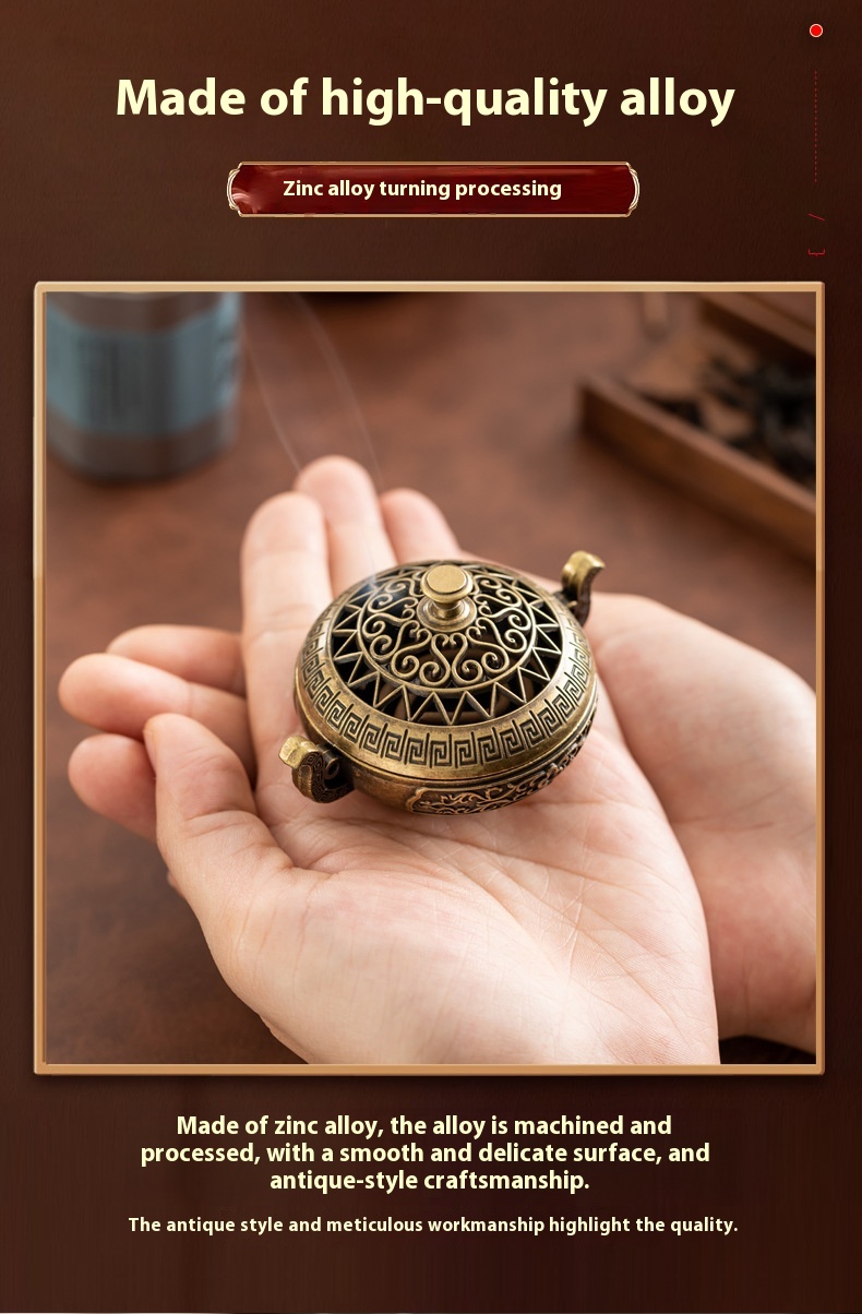 Binaural Antique Incense Burner Exquisite Pattern Hollow Out Three-legged Stove